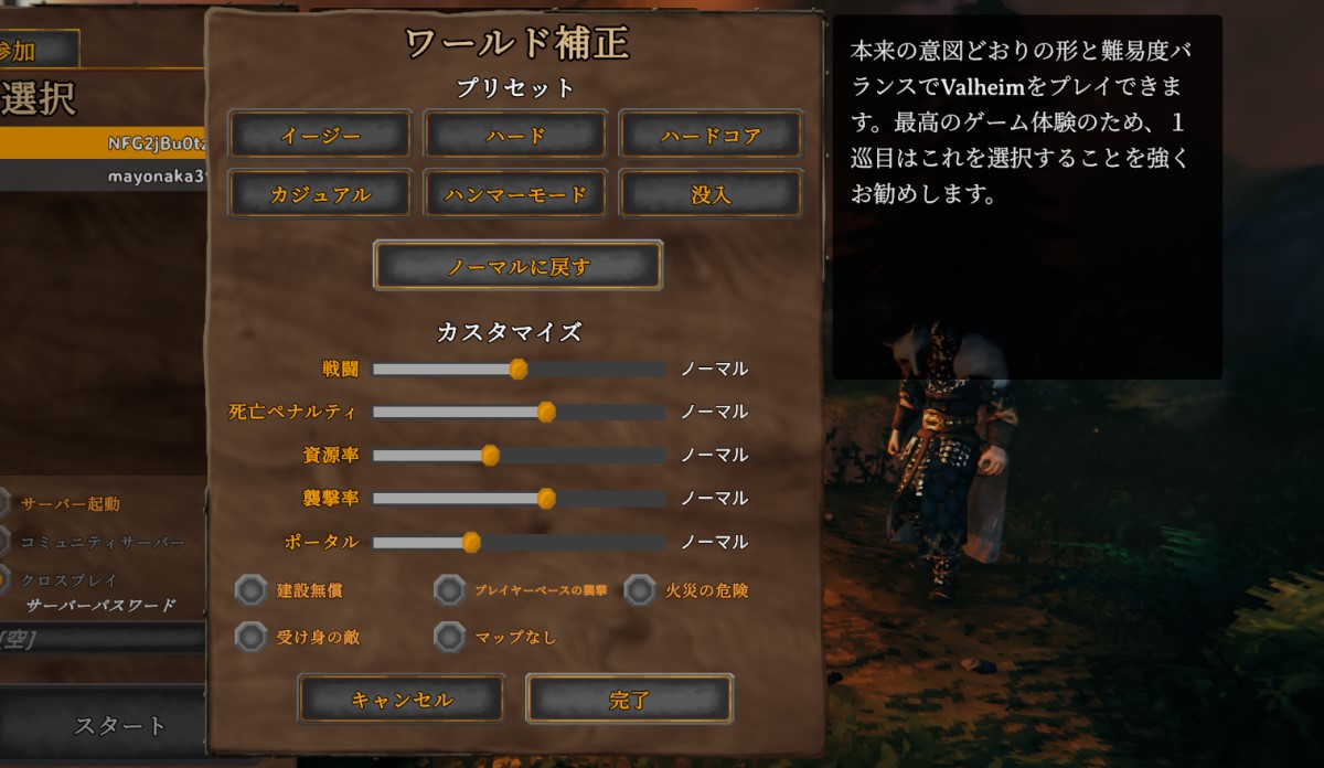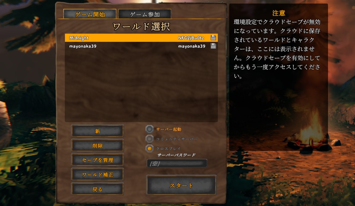 ワールドを選択して(セーブしたデータから)ゲームを開始します。