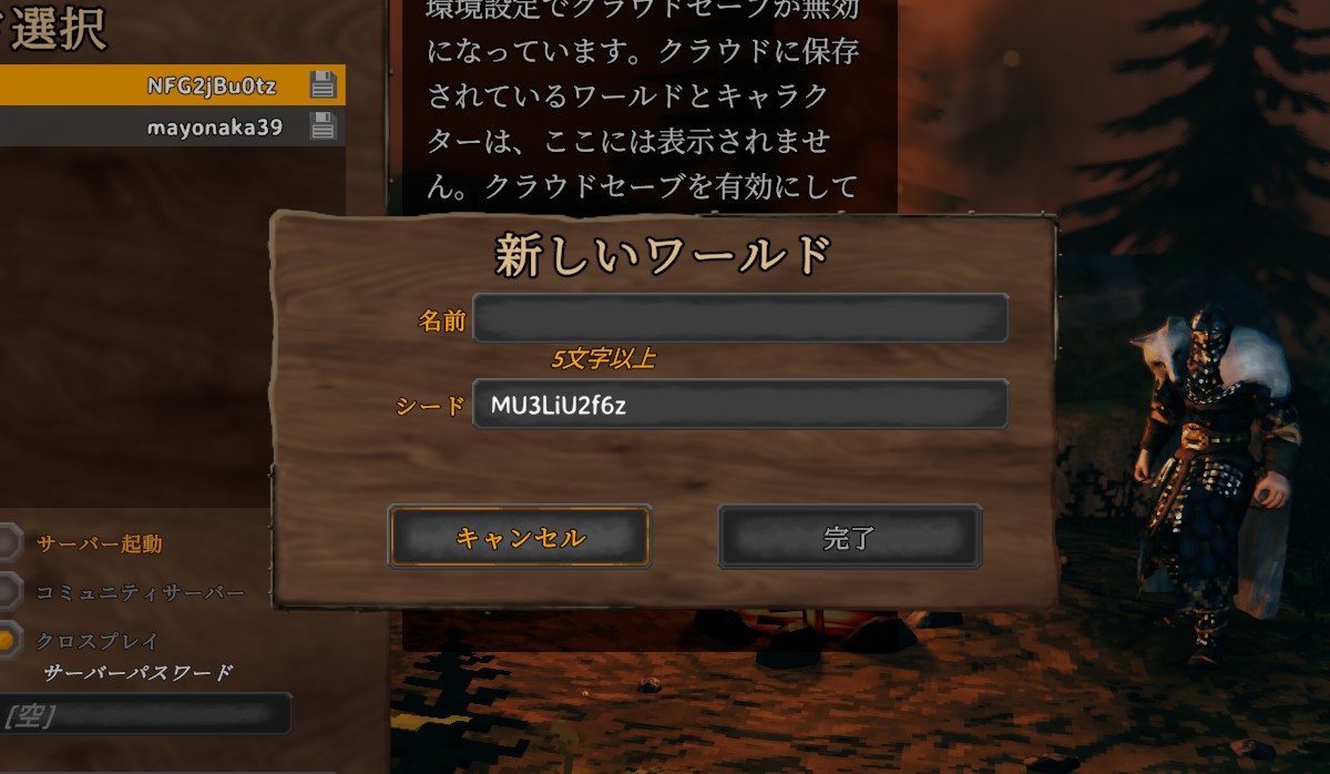 セーブデータはワールド毎、キャラクター毎に用意されています。